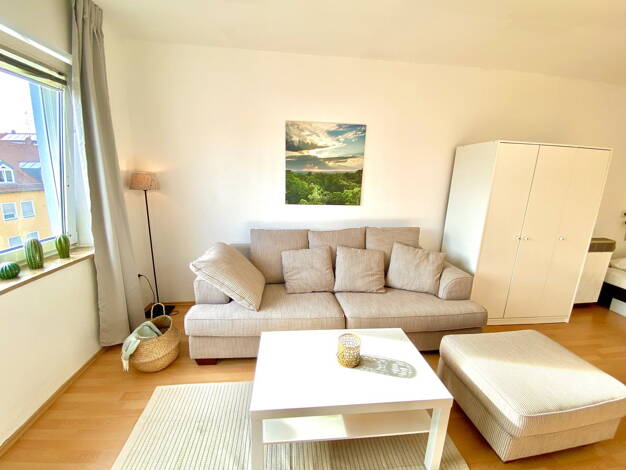 Zu vermieten ist eine stilvoll eingerichtete, helle 1-Zimmer-Wohnung, die keine Wünsche offenlässt: Voll möbliert: Doppelbett, Kleiderschrank, gemütliche Couch und Flachbildfernseher. Schreibtisch mit Stuhl. Moderne Küche: Komplett ausgestattet mit Kochutensilien, Essecke und Waschmaschine. Komfortables Bad: Dusche, WC, Inklusive Haartrockner und allem, was Sie benötigen. Extras: Kostenloses WLAN, Kellerabteil für zusätzlichen Stauraum und Aufzug im Haus. Die Wohnung wurde neu renoviert und ist...
