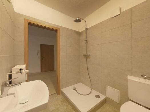 Diese 1-Raumwohnung mit Balkon befindet sich im 2.Obergeschoss eines Mehrfamilienhauses. Zur Wohnung gehören ein Wohn-/Schlafraum, eine Küche mit Zugang zum Balkon und ein Bad. Als Abstellraum steht ein Keller und für das Fahrrad auf dem Hof ein Nebengebäude zur Verfügung. Internet über Telefon (bis 250 Mbit) oder TV Kabel (bis 1.000 Mbit) möglich.