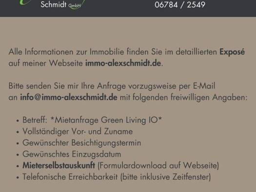 Die unzweifelhaft coolsten Appartments in Idar-Oberstein, innovativ, stylisch, modern. Das ist "GREEN LIVING"! Wählen Sie zwischen 1-Zimmer-Appartments im 1. und 2. Obergeschoss, sowie den Größen zwi...