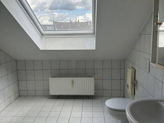 Diese Wohnung verfügt über folgende Raumaufteilung: Offener Wohn- und Schlafbereich mit Zugang zur Dachterrasse (Südseite) und zur Galerie, Küche, Tageslichtbad mit Badewanne, kleine Diele. Zur Wohnung gehört ein Kellerraum. Zur gemeinschaftlichen Nutzung steht den Mietern ein Waschraum und ein Fahrradabstellplatz zur Verfügung.