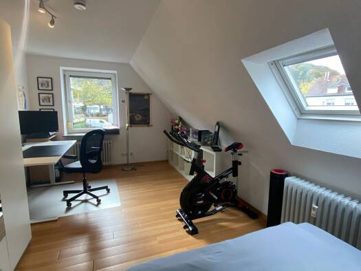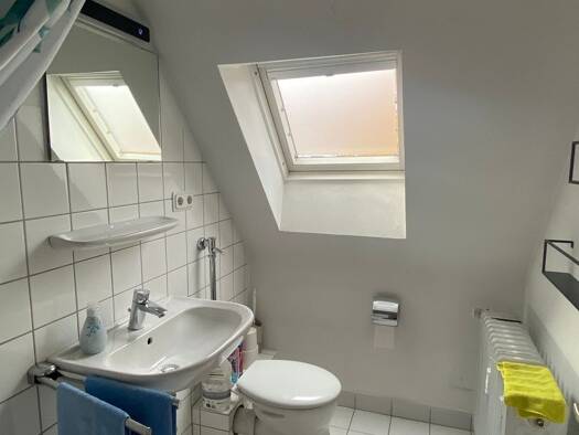 Diese helle und gemu¨tliche Dachgeschosswohnung wurde komplett renoviert und steht ab sofort zur Verfu¨gung. Der Wohn- und Essbereich geht offen ineinander u¨ber und bietet eine angenehme Atmosphäre....