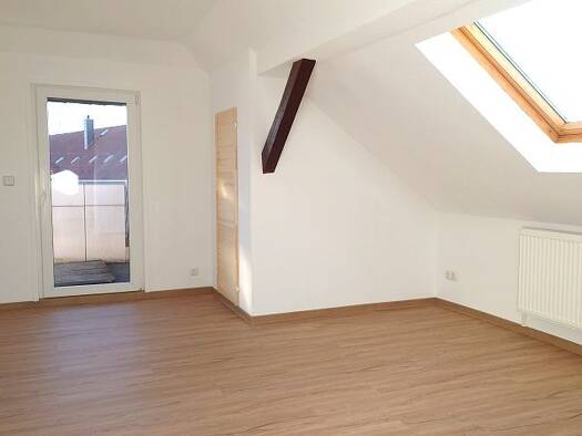 Die gemütliche Dachgeschosswohnung liegt in einem Mehrfamilienhaus mit insgesamt drei Wohneinheiten im ruhigen Ort Kemmlitz, unweit der Stadt Mügeln mit etwa ca. 6.000 Einwohnern. Die Wohnung bietet einen lichtdurchfluteten, offenen Wohnbereich, welcher mit offenen Küchenbereich ausgestattet ist. Der Schlafbereich ist räumlich abgetrennt, bleibt jedoch auf angenehme Weise zugänglich. Die Wohnung verfügt über ein geräumiges Tageslichtbad mit Wanne und Dusche.