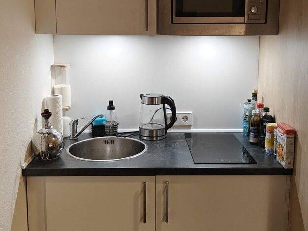 Diese kleine Wohnung liegt im 1. Obergeschoss eines Mehrfamilienhauses und ist gut für eine Person geeignet. Der Bodenbelag im kombinierten Wohn-/Schlafzimmer wird noch erneuert. Ein zusätzlicher Ste...