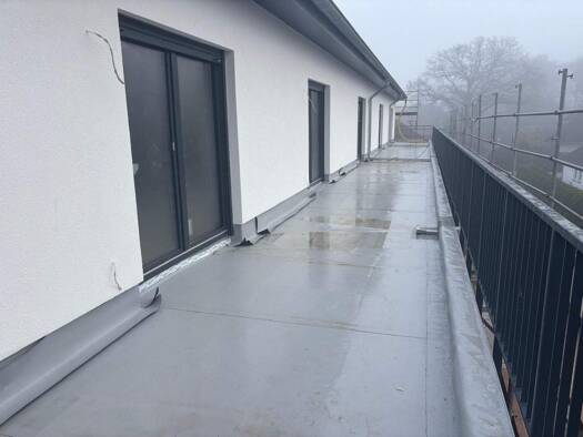 Unsere Wohnung im Erdgeschoss ist barrierefrei zu erreichen. Die verfügt über einen Flur mit Einbauküche. Dahinter gelangen Sie in den hellen und modernen Wohn-/Schlafraum mit Zugang zur Terrasse. Da...