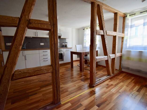 Diese gepflegte 2-Zimmer-Wohnung bietet auf ca. 81 m² Wohnfläche ein komfortables Zuhause in ruhiger und naturnaher Umgebung. Die Wohnung befindet sich im 1. Obergeschoss und überzeugt durch eine durchdachte, zentrale Raumaufteilung, die ein angenehmes Wohngefühl schafft. Das Herzstück der Wohnung bildet die großzügige Wohnküche, die viel Platz zum Kochen, Essen und gemeinsamen Verweilen bietet. Der angrenzende Wohnbereich mit Kamin sorgt besonders in der kälteren Jahreszeit für eine behagliche...