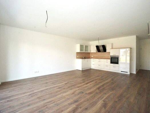 Die quadratisch geschnittene 2-Zimmer-Neubauwohnung ist über einen Laubengang erreichbar und wird in einem geräumigen Flur betreten. Daran anschließend finden Sie das Schlafzimmer, ein Abstellraum un...