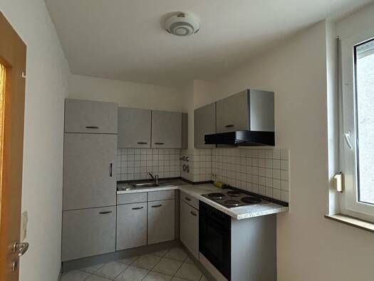Beim Betreten der 2-Zimmer-Wohnung eröffnet sich direkt der großzügige Wohnbereich zusammen mit einem leicht separierten Küchenbereich inkl. Einbauküche und Zugang zum Abstellraum mit Waschmaschinena...
