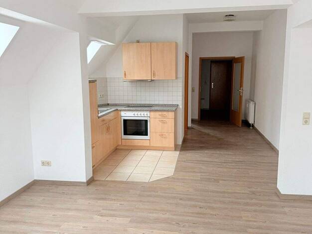 Zur Vermietung steht ab sofort diese attraktive 2-Zimmer-Wohnung. Vom Eingangsbereich aus gelangen Sie direkt in den großzügigen, offen gestalteten Wohn- und Essbereich, der durch seine moderne Rauma...
