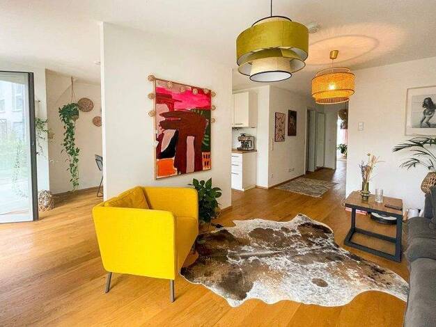Das perfekte Zuhause für Singles oder Paare mit Anspruch an Großzügigkeit und Komfort. Diese außergewöhnliche Erdgeschosswohnung überzeugt mit einem durchdachten Grundriss, moderner Ausstattung und einer Wohnatmosphäre, die keine Wünsche offenlässt. Auf rund 92 m² erwarten Sie zwei großzügig geschnittene Zimmer mit viel Raum zur persönlichen Entfaltung. Der lichtdurchflutete Wohnbereich begeistert mit großen Fensterflächen, durch die sich das Tageslicht harmonisch im hochwertigen Holzboden wide...