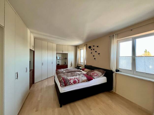 A lovely apartment facing both south and north, with larger balcony facing the mountains. There is a large walkable forest behind which I regularly go for walks, a public park with an outdoor gym and skateboarding area, and a football ground. There are many, many shops like Lidl, Aldi, and Edeka at 2, 3, 4 minutes walking distance, as well as a Turkish groceries shop. Two bus connections take you quickly to many key areas and also the S-Bahn. The apartment is on the 7th floor and is about 60m2....