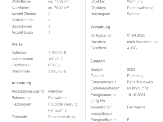 2 Balkone, beide Südseite. Ruhig gelegen, keine Straße in der Nähe, am Feldrand. Bushaltestelle 5 min zu Fuß, U6 20 minuten zu Fuß (8 Minuten mit Fahrrad) Wohnküche. Badewanne, keine extra Dusche. Wo...