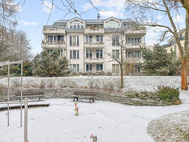 Das gepflegte Mehrfamilienhaus verfügt über ein Vorderhaus und einen Seitenflüge und befindet sich in ruhiger, grüner Lage von Wilhelmsruh (Pankow).
