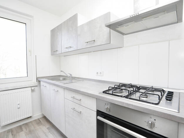 Lieber Mietinteressent, Angeboten wird eine fast 50 qm helle große 2 Raumwohnung mit Wohnküche im sanierten Altbau. Die Wohnräume wurden mit hochwertigem Laminat versehen. Das Tageslichtbad ist mit Wanne und Dusche ausgestattet. Die Wohnung liegt im Hochparterre. Dem Mieter wird ein Kellerabteil zur Verfügung gestellt. Bezug ab 01.10.2025 möglich.