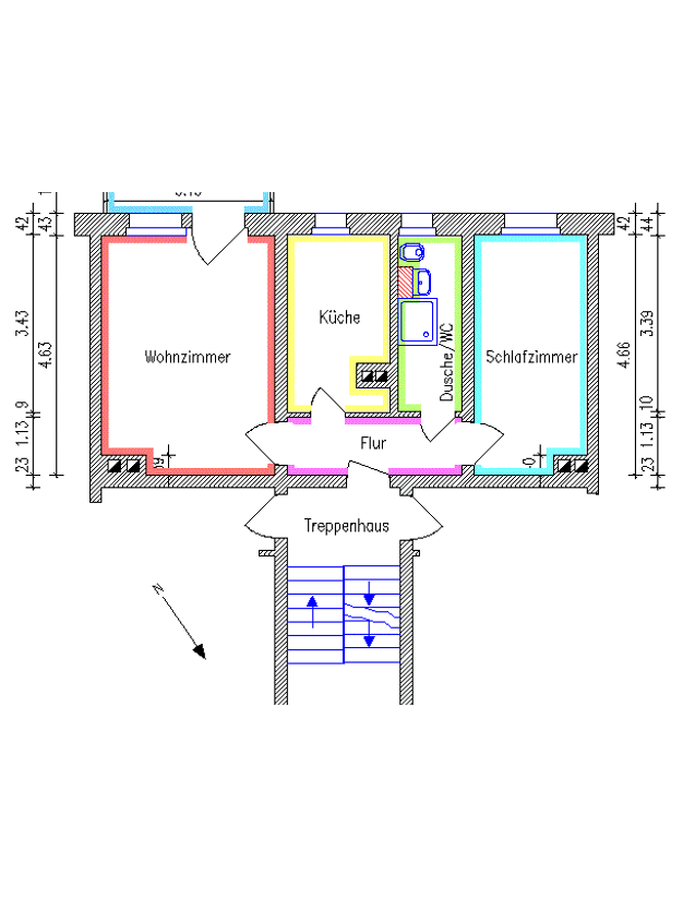 Objektbeschreibung Die Wohnung befindet sich in einem denkmalgeschützen 10-Familien-Haus, welches im Jahr 2016/2017 einer Komplettsanierung unterzogen wurde. Raumaufteilung Die Wohnung ist mit einem Balkon zur Gartenseite und einer Dusche ausgestattet. Es gehören außerdem ein Keller sowie eine Dachbodenkammer dazu. Die offene Küche hat keine Einbauküche. Ein wohnungsinternes LAN-Netz ist vorhanden. Hausmeisterdienst im Objekt.