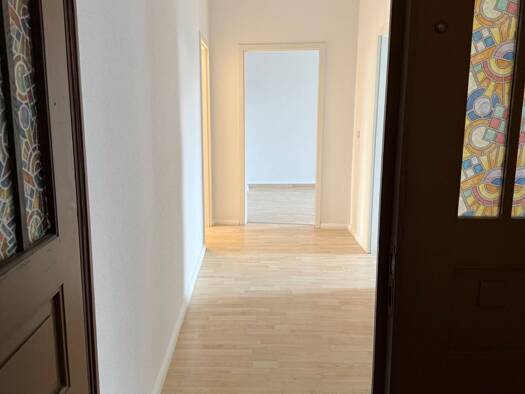 Die Wohnung befindet sich in einem schönen Mehrfamilienhaus, der Balkon zeigt Richtung Garten. Eine Gartenmitnutzung ist möglich. Der Fußboden ist in den 2 Zimemrn mit Parkett ausgestattet, sonst mit PVC-Belag, das Bad ist gefliest.