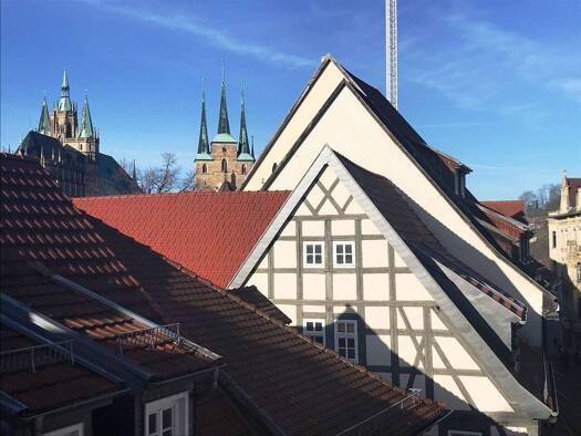 In Erfurts zauberhafter Altstadt befindet sich diese herrliche Maisonette-Wohnung in einem Denkmalgeschützen Altbau. Die Wohnung erstreckt sich über zwei Etagen, wobei sich unten die Küche mit Balkon...