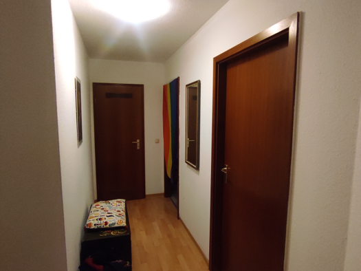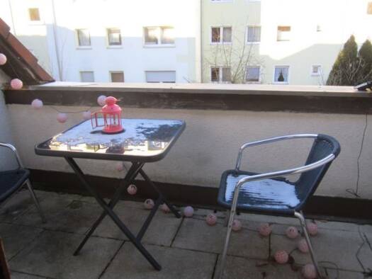 Zwei Zimmerwohnung in einem Mehrfamilienhaus im dritten Stock. Wohnzimmer mit Zugang zum sonnigen Balkon zum Hof, Schlafzimmer nach Norden ausgerichtet mit Blick in Richtung der nahen Innenstadt. WC ...