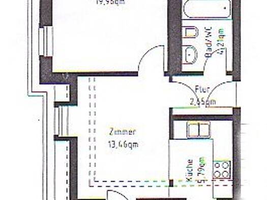 Zu vermieten ist eine gepflegte Zweiraumwohnung mit Küche, Bad und Balkon. Alle Zimmer sind vom Flur aus zu erreichen. Die Zimmer sind großzügig geschnitten so dass diese genug Stellmöglichkeiten für Möbel bieten. Der Fußboden der Räume ist mit Laminat ausgestattet und die Wände und Decken weiß gestrichen. Die Küche verfügt über einen Fliesenspiegel, Bodenfliesen, einen Elektroherdanschluss und den Zugang zum Balkon. Der Balkon zeigt in Richtung Innenhof und ist groß genug um gemütlich zusammen...