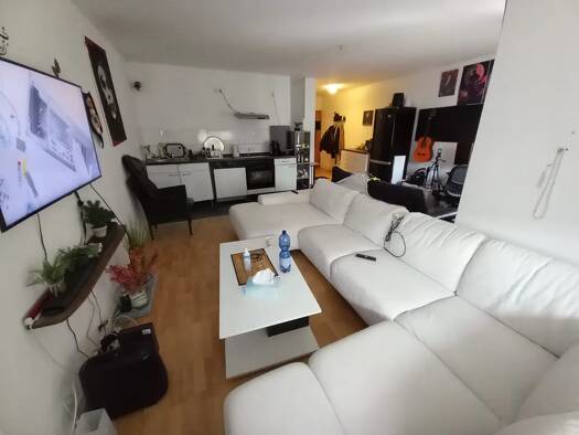 Beschreibung: 68 m² große Wohnung für maximal 2 Personen. Die Wohnung verfügt über zwei 24 m² große Zimmer und befindet sich in gepflegtem 1,5 Familienhaus mit separatem Hauseingang. Einbauküche kann...