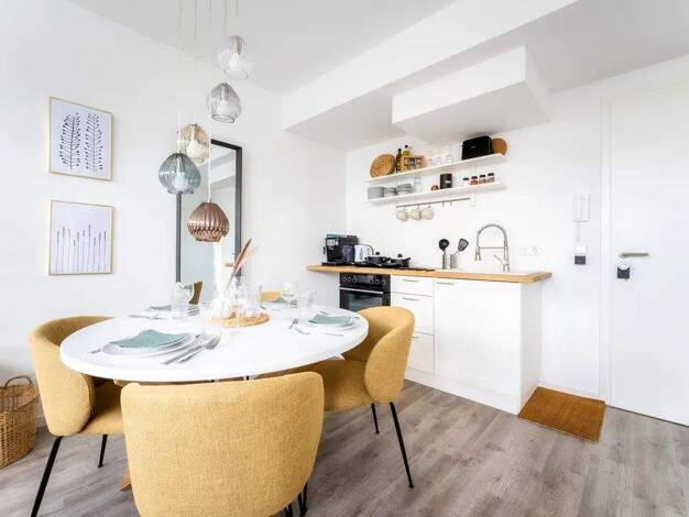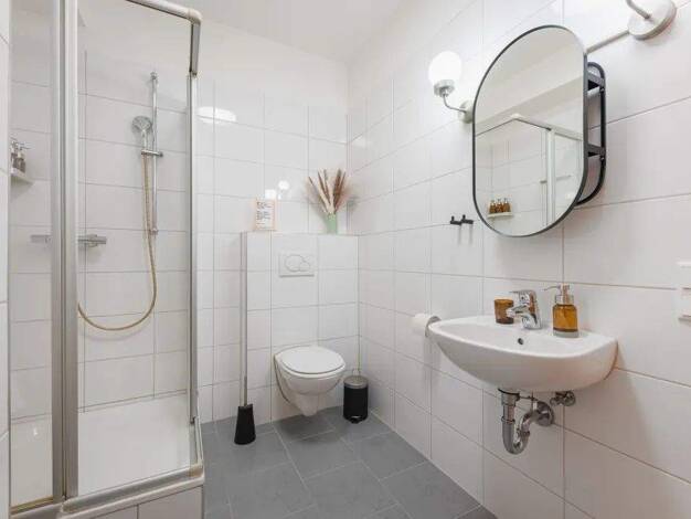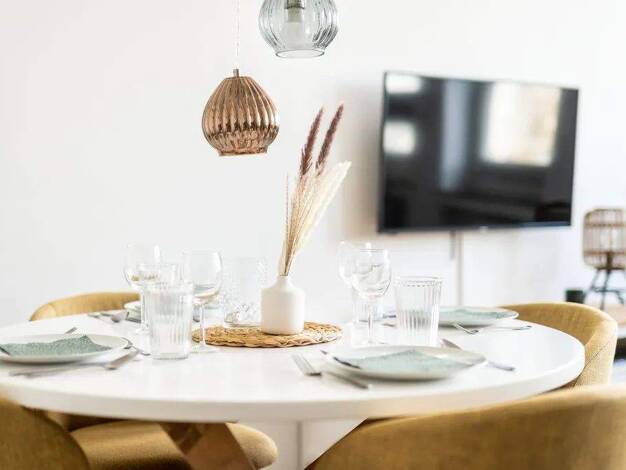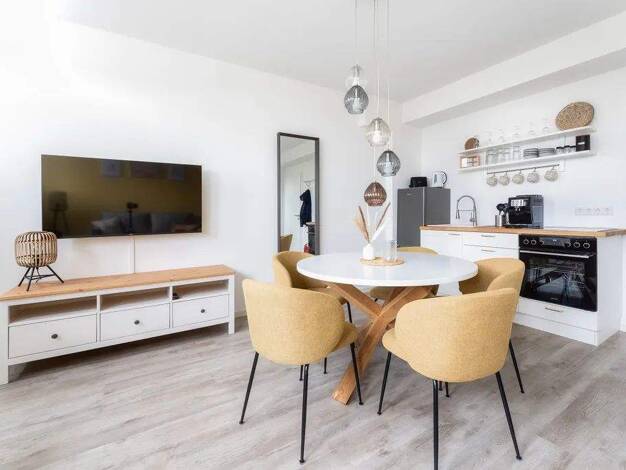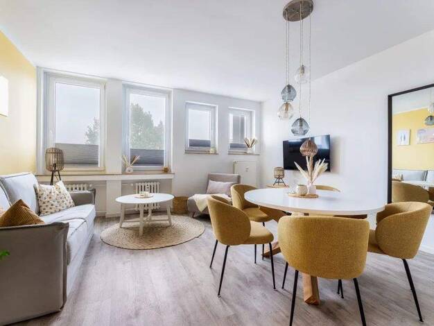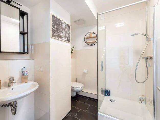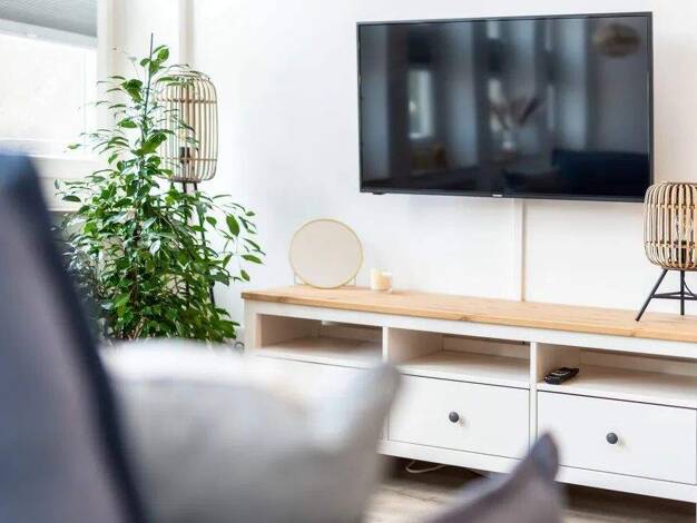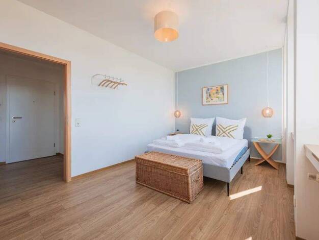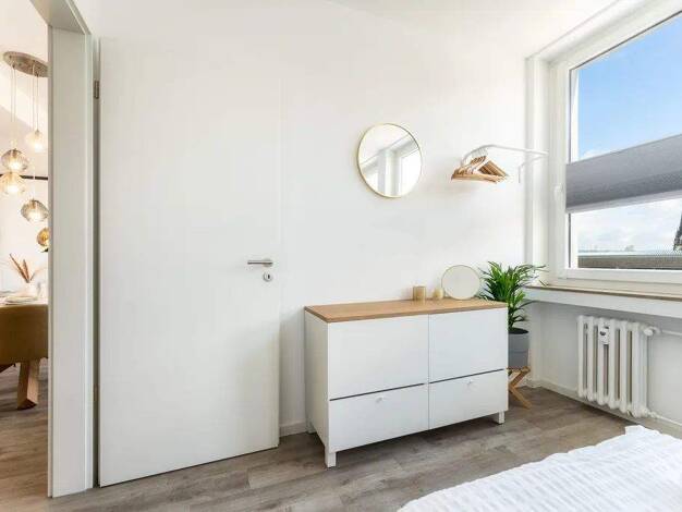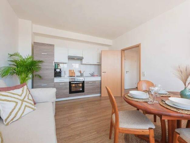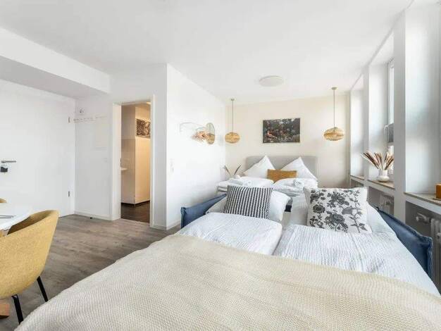 Das moderne Apartment überzeugt mit viel Tageslicht, stilvollem Design und einer gemütlichen Atmosphäre. Der Wohnbereich bietet eine ausziehbare Couch als zusätzlichen Schlafplatz mit Bettwäsche in H...