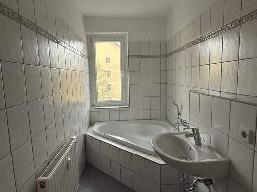 Diese Zweiraumwohnung befindet sich in Hochparterre eines Mehrfamilienhauses. Das geflieste Tageslichtbad ist mit einer Badewanne ausgestattet. In der geräumigen Küche befindet sich ein Fliesenspieg...