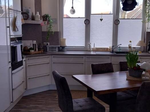 Schöne, helle 3 Zimmerwohnung in einem 6-Parteienhaus mit gehobener Ausstattung. Flur, Bad, Küche und Wohnzimmer sind hell gefliest, in den Schlafräumen liegt Laminat. Das Badezimmer ist mit eine Badewanne und Dusche ausgestattet. Zur Wohnung gehört ein großer Kellerraum und Platz für Waschmaschine und Trockner im großen Waschraum. Der Garten ist für alle Mieter zugängig, Raum für Fahrräder vorhanden. Der Mieter übernimmt das Aufstellen und Zurückstellen der Mülltonnen der Häuser, damit ist ein...