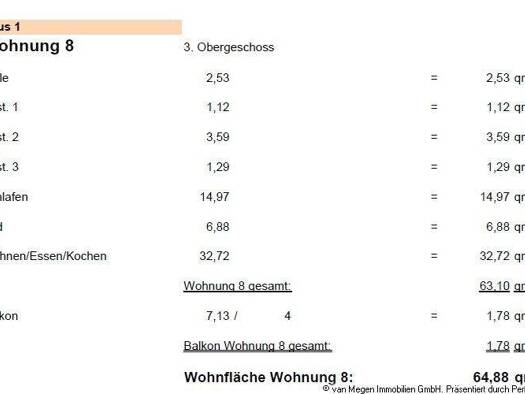 Die Wohnung mit 68 qm besteht aus Wohnzimmer, Schlafzimmer, kl. Abstellkammer, Küche, Diele, Bad mit Dusche und Loggia. Die Wohnungen sind wie folgt ausgestattet: Alle Räumen haben einen Laminatboden...