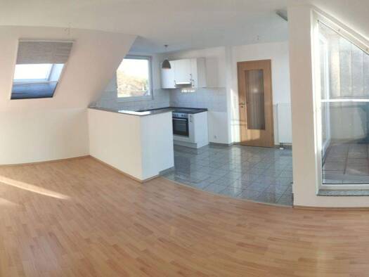 Bei der hier angebotenen Wohnung handelt es sich um eine 2 Zimmerwohnung im Dachgeschoß (Auszug vorhanden). Die Wohnräume sind Raufaser weiß gestrichen, der Boden ist mit einem Laminat in Holzoptik v...