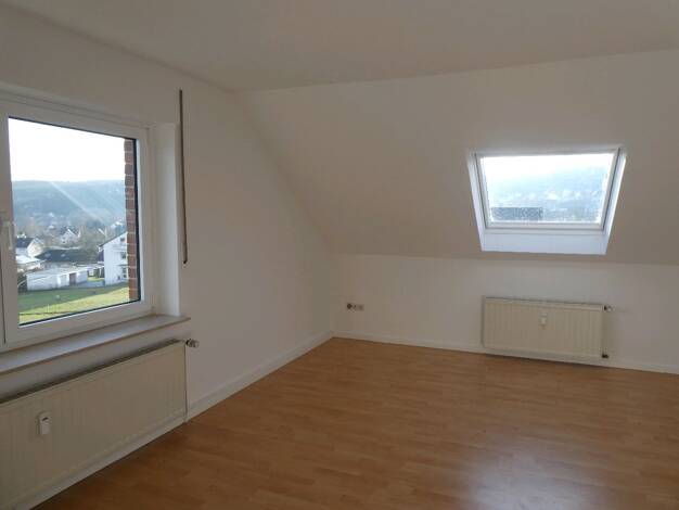 Besonders schicke, helle, modernisierte und freundliche Dachgeschosswohnung in Möhnesee-Körbecke mit großen Dachfenstern und hochwertigem Echtholzboden - 55m² Wohnfläche - 2 Zimmer, Küche, Diele, Bad - Offene Küche im großzügigen Wohnbereich - helle, moderne Einbauküche - Dachfenster mit elektr. Außenrollos - Echtholzboden - Fernblick über Körbecke und den See bis hinein in den Arnsberger Wald - Eigener Gartenbereich mit Terrasse - Gartenhaus für Fahrräder und Gartengeräte - gehobene Atmosphäre...