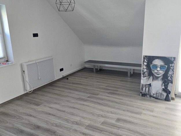 Dachgeschosswohnung (1.OG) in einem Haus mit nur zwei Parteien. Großzügiges Wohn- & Esszimmer mit Gaube, Schlafzimmer, Küche (mit Einbauküche) Bad mit Dusche und Fenster, Abstellkammer, Diele, Kelleranteil