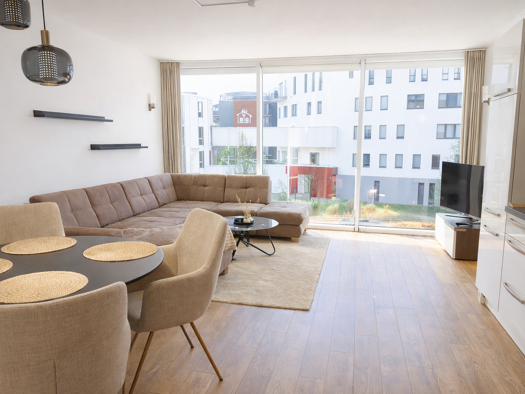 Dieses hochwertige, vollständig möblierte 2-Zimmer-Apartment mit ca. 70 m² Wohnfläche befindet sich im 2. Obergeschoss eines modernen Mehrfamilienhauses (Baujahr 2012) in ruhiger und zugleich zentraler Lage direkt am Rostocker Stadthafen. Die Wohnung ist ideal für Geschäftsreisende, Projektmitarbeiter, Expats oder Führungskräfte, die für einen längeren Zeitraum in Rostock wohnen möchten und Wert auf Komfort, hochwertige Ausstattung und eine attraktive Lage legen. Der großzügige Wohnbereich mit ...