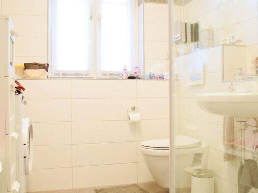 Das ruhig gelegene Mehrfamilienhaus verfügt über 3 Etagen. Im Keller des Hauses befindet sich neben einem Abteil zu jeder Wohnung auch ein gemeinschaftlicher Waschmaschinenraum. Der an das Haus angre...