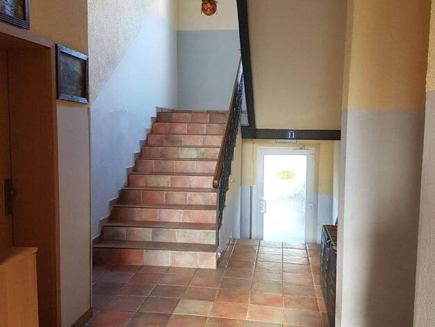 Sie wohnen in einem sanierten Mehrfamilienhaus, Baujahr 1972. Den Hausaufgang und Kellerräume teilen Sie sich mit 9 weiteren Mietparteien. Hinter dem Haus finden Sie einen Wäscheplatz und weitläufige Grünflächen. Die Treppenhausreinigung wird durch eine Reinigungsfirma durchgeführt.
