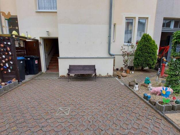 Objektbeschreibung Das Objekt umfasst eine Gewerbeeinheit sowie 3 Wohneinheiten. Der Hinterhof kann durch alle Parteien mitbenutzt werden. Raumaufteilung Vom Flur aus gelangt man in das Tageslichtbad mit Wanne (neu gefliest und Sanitär getauscht) sowie die Küche und das Wohnzimmer. Auch hier wurden die Bodenbeläge gegen modernes Laminat in grauer Holzoptik getauscht. Alle Räume sind hell und freundlich, was nicht zuletzt an den vielen Fenstern liegt. Die tollen offen gelegten Holzbalken im Wohn...