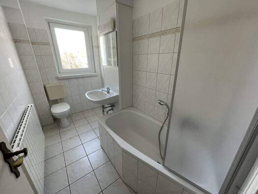 Die helle 2-Zimmerwohnung mit Küche und Bad (mit Wanne) befindet sich in der 3. Etage eines Mehrfamilienhauses.