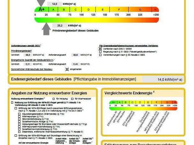 Grundmiete: 930 € Küche: 80 € Tiefgarage: 60 € Außenstellplatz: 30 € Betriebskostenvorauszahlung: 210 € Gesamtmiete: 1310 € - massive und hochwertige Bauweise - KfW 55 Energieeffizienzhaus - Fußbodenheizung mit Einzelraumregelung - Personenaufzug in alle Etagen - hochwertiger Fußbodenbelag - 3-fach Isolierverglasung - Balkon, Dachterrasse, Garten und/oder Terrasse (teilweise überdacht) - Tiefgaragenstellplatz/Außenstellplatz - Kellerabteil