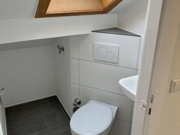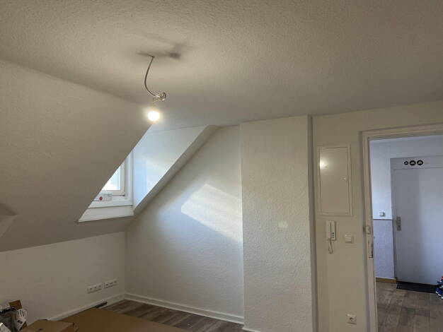 Bitte Anfragen nur mit Telefonnummer! Hier finden Sie eine hübsche 2 Zimmer-DG-Wohnung für max. 2 Personen. Die Wohnung wird frisch, in weiß gestrichen übergeben. Beim Betreten der Wohnung fällt Ihnen sofort die gemütliche Atmosphäre der Wohnung auf. Auf der rechten Seite befindet Sie sofort das Tgl.-Bad, ausgestattet mit einer Dusche, Waschbecken und Toilette. Angrenzend befindet sich die kleine Küche, die Küchenzeile kann vom Vormieter übernommen werden (VB). Auf der linken Seite liegt das Sc...