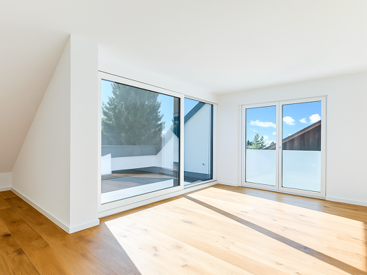 Diese helle und stilvolle 2-Zimmer-Dachterrassenwohnung in Vaterstetten steht ab dem 01.04.2026 zur Verfügung. Über den einladenden Flur gelangen Sie in den großzügigen Wohn-, Ess- und Kochbereich, d...