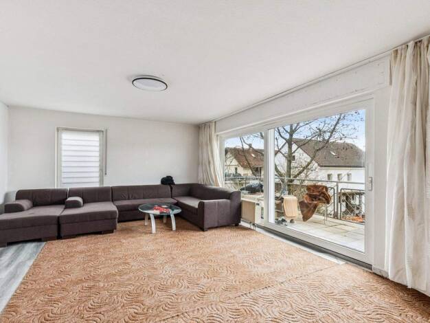 Die Dreizimmerwohnung liegt im Erdgeschoß eines freistehenden, 1961 in massiver Bauweise errichteten Architektenhauses mit drei Vollgeschossen und Walmdach. Das Gebäude steht auf einem parkähnlichen,...