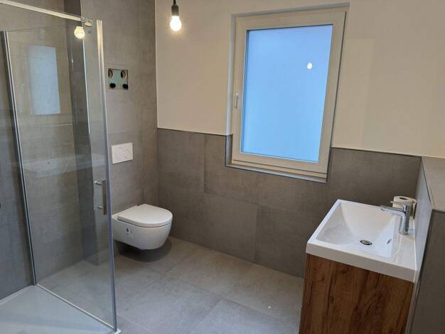 3-Zimmerwohnung verteilt über zwei Ebenen. Im 1. OG befinden sich Badezimmer, Küch- und Esszimmer, Wohnzimmer und Schlafzimmer. Das Dachgeschoss mit freiliegenden Balken bietet mit 40 Quadratmeter zusätzliche Wohnfläche. Ausstattung: Badezimmer: Modernes Bad mit Dusche und Badewanne Küche: Voll ausgestattete Einbauküche Fenster: 3-fach verglaste Fenster inkl. elektrischer Rollläden Ostbalkon Energieeffizientes Wohnen inkl. Wohnraumbelüftung durch Zu- und Abluftanlage, Wärmepumpe und Fußbodenhei...