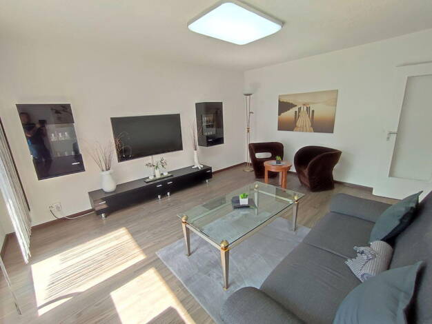 Diese großzügige 3-Zimmer-Wohnung mit einer Wohnfläche von ca. 109 m² befindet sich in einem gepflegten Vierfamilienhaus und vereint komfortables Wohnen mit modernem Stil und einer sonnigen Lage. Der geräumige Wohn- und Essbereich besticht durch seine Helligkeit und den direkten Zugang zum Balkon mit Südausrichtung - hier genießen Sie eine traumhafte Aussicht und viele Sonnenstunden. Die moderne Einbauküche lässt keine Wünsche offen und bietet Zugang zu einer kleinen, charmanten Terrasse - perf...