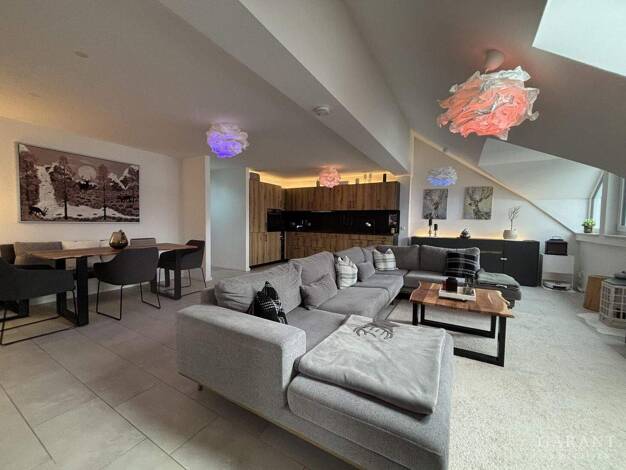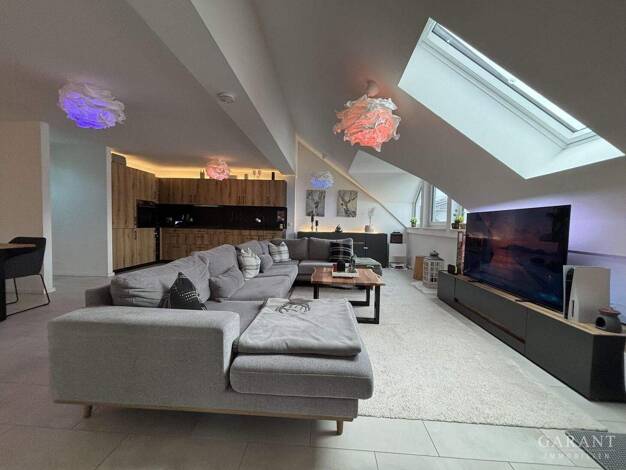 Charmante Dachgeschosswohnung mit großzügigem Wohnbereich und zwei Schlafzimmern Diese elegante Dachgeschosswohnung überzeugt durch ihren offenen Wohn- und Essbereich, der mit viel Licht durchflutet ...