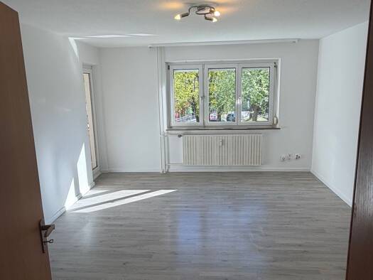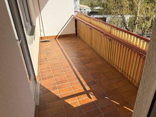 Beschreibung: Die Wohnung im Dachgeschoss verfügt über 3 Zimmer, Küche, alles tapeziert mit Raufaser weiß; ein Tageslichtbadezimmer mit Badewanne, Waschbecken, und einem separaten WC, Flur mit Einbauschrank, Balkon, separatem Kellerraum und Kfz-Stellplatz 50€. Die Wohnung wird über eine Öl-Zentralheizung beheizt. Der große Garten, mit Wäschetrockenplatz kann gemeinschaftlich genutzt werden. Laminatboden bzw. Fliesen, Gartenmitbenutzung. Ausstattung: Alle Zimmer und Flur mit Laminat. Küche, Bad ...