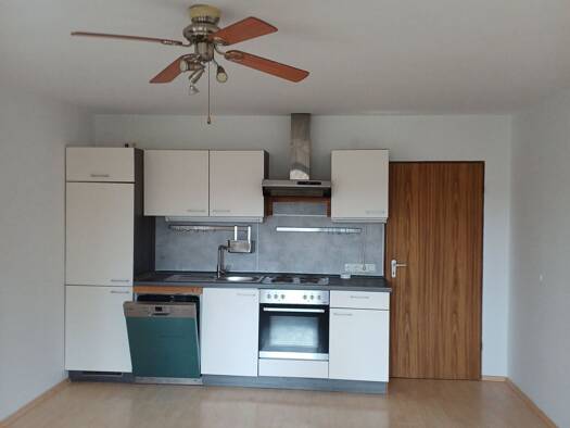 Schöne Wohnung im ruhigen Wohngebiet mit Süd-Balkon. Küche vorhanden, Kleiderschrank (Einbauschrank vom Schreiner) sowie Sideboard und Bett abzugeben. Tiefgaragenstellplatz inklusive und der Bus fähr...