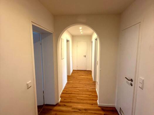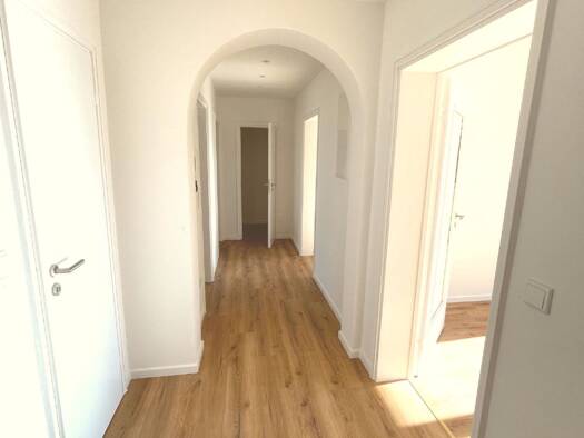 Diese 3-Zimmer-Wohnung mit einer Wohnfläche von 76,86 m² befindet sich in einem gepflegten Mehrfamilienhaus in der Eisenacher Straße, 96450 Coburg. Die Wohnung liegt bequem erreichbar in einem der Stockwerke und bietet einen durchdachten Grundriss mit einem großzügigen Wohnraum, einem modernen Badezimmer sowie einem hellen Flur mit Holzboden, der den Eingangsbereich elegant strukturiert.