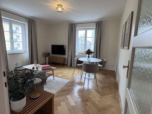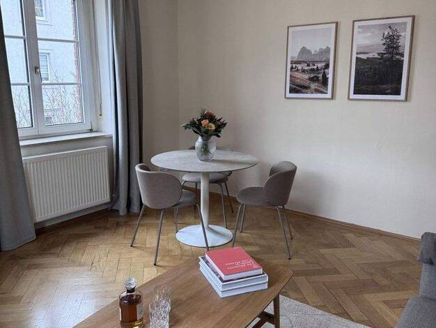 Willkommen in einem Zuhause, das Ruhe, Stil und Substanz vereint. Diese vollmöblierte, denkmalgeschützte Altbauwohnung verbindet historischen Charakter mit zeitgemäßem Wohnkomfort - ideal für Expats,...