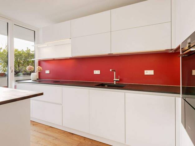 Genieße einen atemberaubenden Blick bis zu den Alpen, entspannende Ruhe und sonnenverwöhnte Privatsphäre auf Deiner ca. 162 m² großen Dachterrasse! Lichtdurchflutete Räume prägen dieses beeindruckende Penthouse und großzügige Fensterflächen garantieren zu drei Himmelsrichtungen ein natürliches Lichtambiente. Zeitgleich ist dank der dreifach verglasten Wärmeschutzfenster für ein angenehmes Raumklima gesorgt. Das hervorragende Raumkonzept garantiert Dir ein geräumiges Schlafzimmer sowie einen wei...