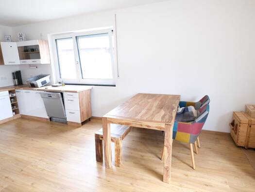 Kurzbeschreibung 3 Zimmer-Wohnung Objekt Diese moderne 3 Zimmer-Wohnung, mit dem großen Südbalkon und der hochwertigen Ausstattung, liegt im 1. Obergeschoss eines 2021 errichteten Mehrfamilienhauses mit nur 5 Wohneinheiten. Zur Wohnung gehört noch eine Einbauküche. Die Beheizung erfolgt über eine Pellets- und Fußbodenheizung. Zur Wohnung gehört noch ein Tiefgaragenstellplatz und ein Kellerabteil. Raumaufteilung: Essen/Wohnen 23,28 m² Küche 5,81 m² Schlafen 13,74 m² Kind 10,35 m² Bad/Dusche/WC 8...