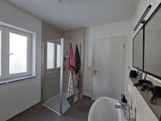 3 ZKB Räumlichkeiten: Flur, Ess- Wohnzimmer, Küche, Abstellbereich, gr. Westterrasse (21 m²), Garten, Schlafzimmer, Kinderzimmer, Bad: Wanne (180 cm x 85 cm), bodentiefe Dusche, WC, Waschbecken, Handtuchheizkörper. Sonstiges: Kellerraum, TG-Stellplatz, Kfz-Stellplatz Fakten: - Zentralhzg. Pellets - Fußbodenheizung mit Einzelraumsteuerung - Böden: Avatara-Floor u. Fliesen - komplette Badausstattung - 3-fach verglaste Kunststofffenster mit elektrischen Rollläden - denzentrale Belüftungsanlage - T...