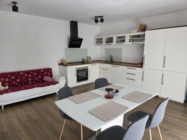Die geräumige 3-Zimmerwohnung aus dem Jahr 2008 im ersten Obergeschoss liegt im hinteren Teil des Mehrfamilienhauses, welches aus sechs Einheiten besteht. Sie verfügt über Laminatboden im Wohn- sowie den Schlafzimmern, sowie Fliesen im Bad und der Küche. Einbauküche samt deren Gerätschaften wie dem Kühlschrank, neuem Cerankochfeld und Ofen sind im Mietpreis enthalten. Der geräumige Wohn- Essbereich hat einen großen, sonnigen Balkon mit Südost-Ausrichtung und hat vor kurzem einen komplett erneue...